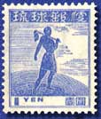 米軍の統治下に移項された当初、沖縄では日本切手がそのまま流用され使用されたが、現存するカバーは極めて少ない。その後、昭和切手に認印として個人判を捺印した「暫定切手」の使用時期を経て、上の1次普通切手発行に至った。この切手には初版と再版があり使用された用紙の種類によって分類される。初版は灰白紙が使用され、再版は白紙が使用された。