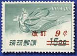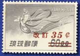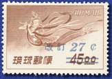 海外向けの郵便料金が改正され、通貨単位の切り替えで不要となっていたB円時期発行の天女航空切手に、新額面を加刷して発行した。