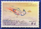 1959年10月15日に海外向け料金が改正されてから、B円時期発行の航空切手に新額面を加刷し、急場をしのいできたが、グラビア多色刷りとして発行された。以後、復帰までの11年間にわたり継続発行された。